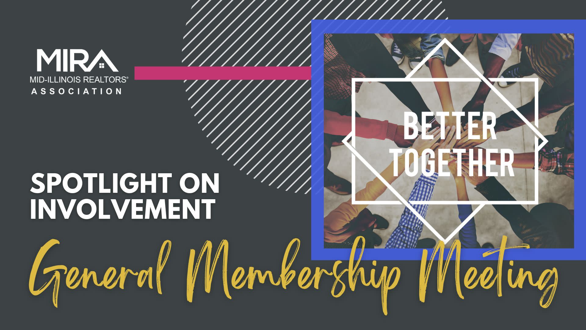 Join us for our June General Membership Meeting happening June 29th. Starting at 8:45am with breakfast and induction of our new members at 9:00am, we'll spotlight involvement in your association at the local level, Last GMM we learned from IR and NAR leaders the 'why and how' of getting involved at the state and national level, this meeting we'll learn about getting involved locally with a panel of our executive leadership/past presidents.