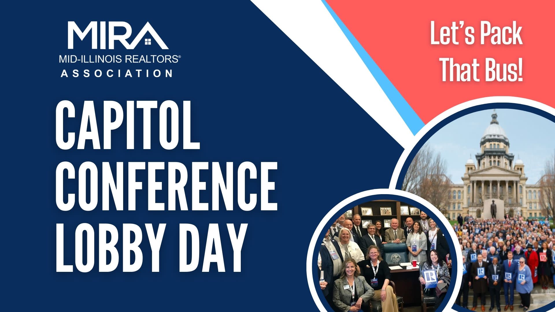 Join REALTORS® from all across the state in Springfield for the biggest advocacy day of the year! Whether you are new to the industry or have been in the business for years, decisions about home ownership and private property rights directly impact your business! The MIRA Bus will leave the Doubletree parking lot at 9:00AM and return around 8:00pm. A light breakfast, lunch and complimentary transportation provided. Event and bus ride is FREE for those who register, however a $70 CHARGE WILL BE ASSESSED TO YOU BY IR/MIRA FOR REGISTERING BUT NOT ATTENDING THE CONFERENCE. Cancellations must be done by April 25th to avoid the fee. Please register for the bus and conference NO LATER THAN April 23, 2024. Once you sign up to ride the bus, you MUST ALSO REGISTER FOR THE EVENT at: https://www.illinoisrealtors.org/events/capitolconference/ Schedule of events: Bus leaves from and returns to the Doubletree Hotel in Bloomington. Lobby Days takes place at the BOS Center and the State Capitol in Springfield, IL.